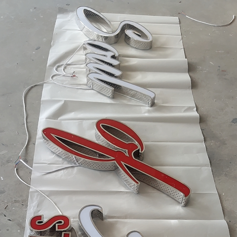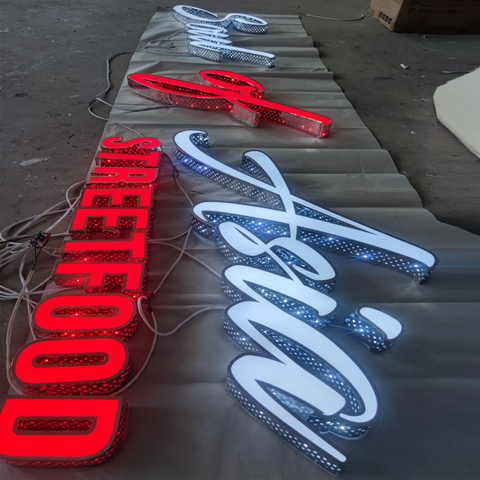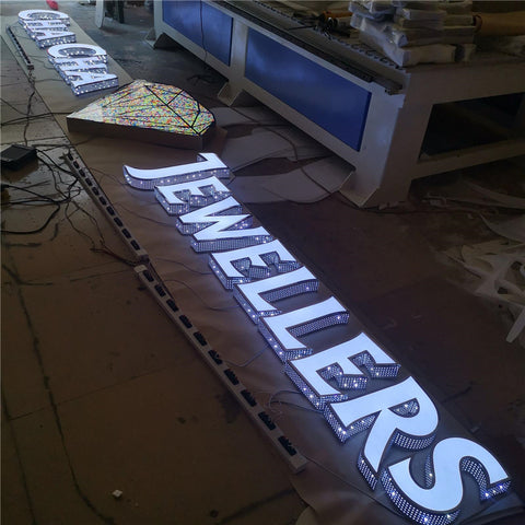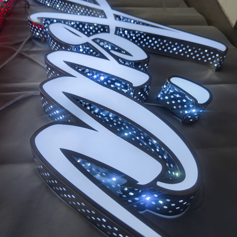 Acrylic fronts, returns are punched some holes, waterproof LED lights for outdoor use, which makes the letters more attractive like diamond shiny.