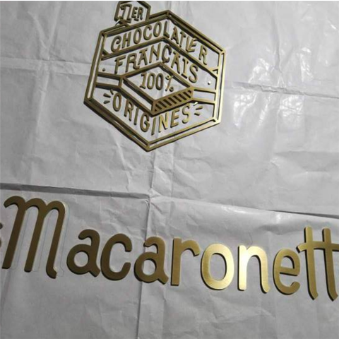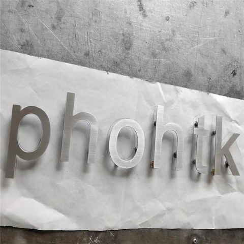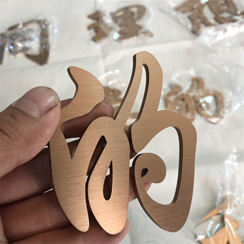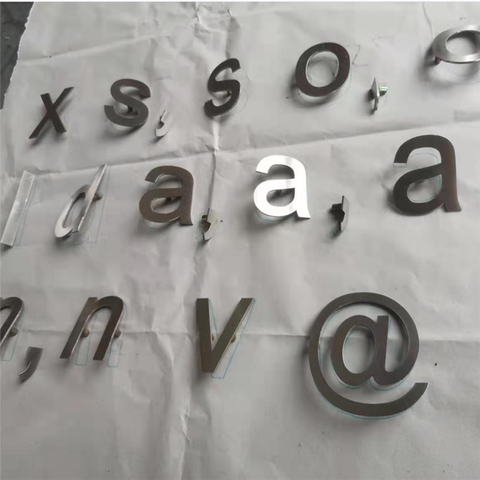Laser cut, 1,2,3,5 and 10mm thick stainless steel letters, paint colors and electroplated into gold color, adhesive or studs installation